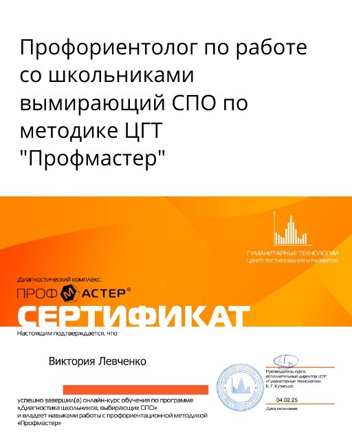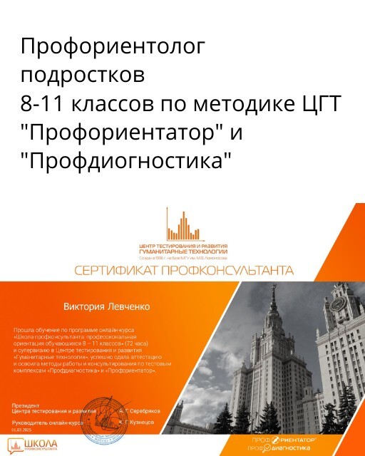 Автор тестов и программ подростков и взрослых по профориентация.