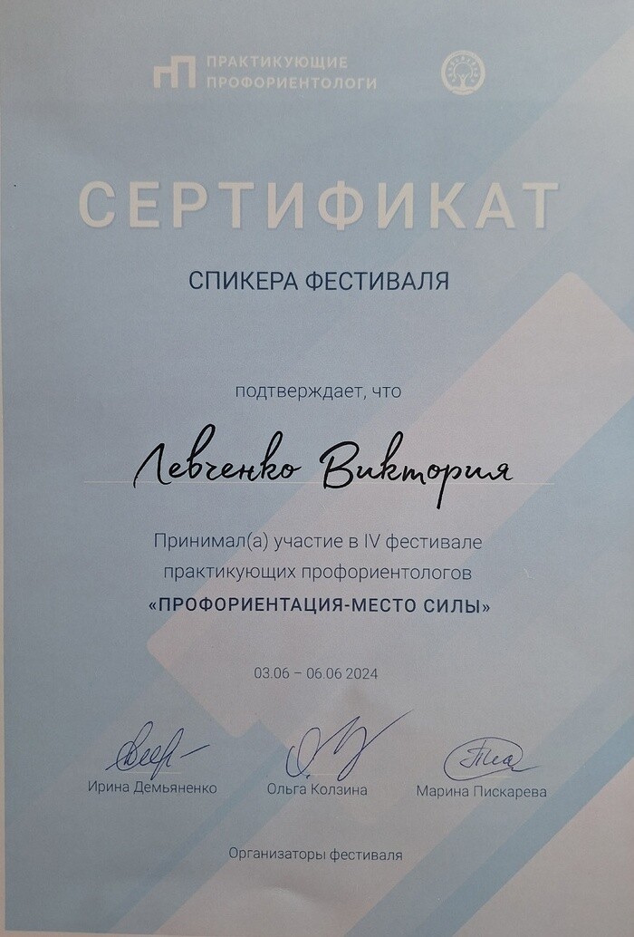 Спикер профессиональных фестивалей и конференций для практикующих профориентологов.