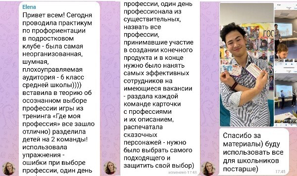 Лёгкость в проведении тренингов - подростки заинтересованные и включенные в процесс, так как контент по профориентации дается в игровой форме.