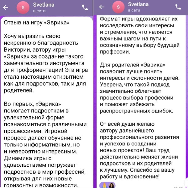 Признание от родителей вашей экспертизы, благодарность за качественную работу с их детьми, выбор профессии и успешное будущее ребенка.